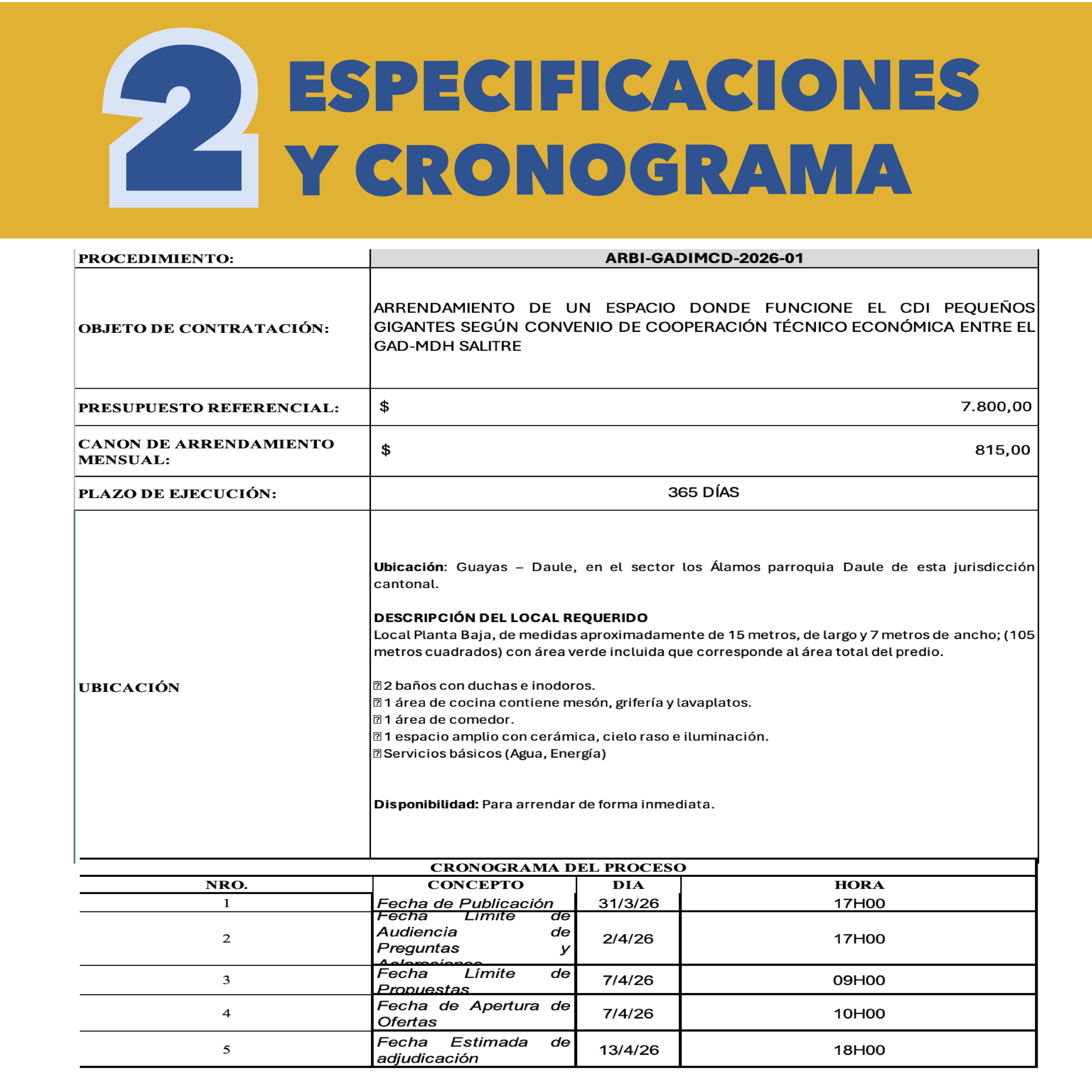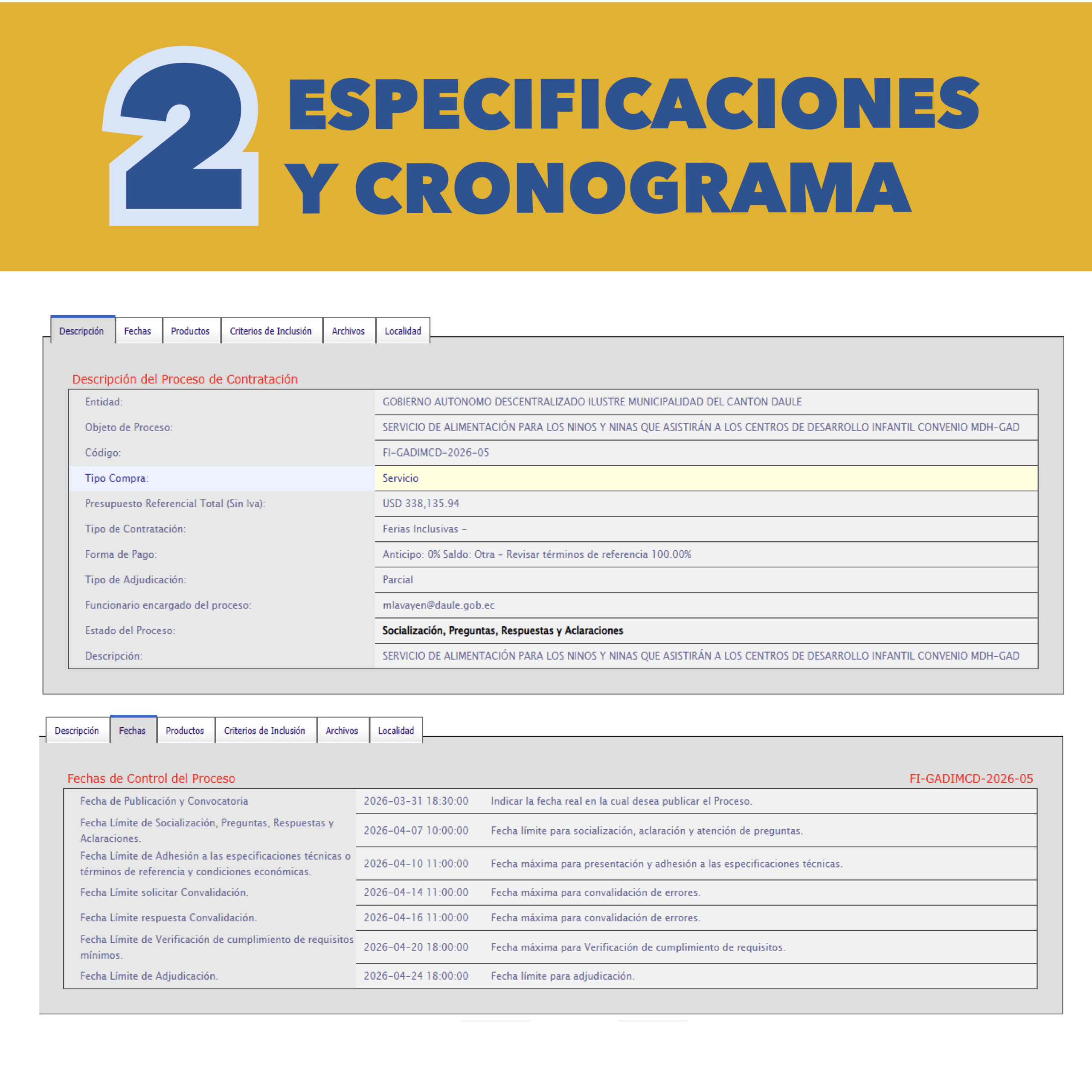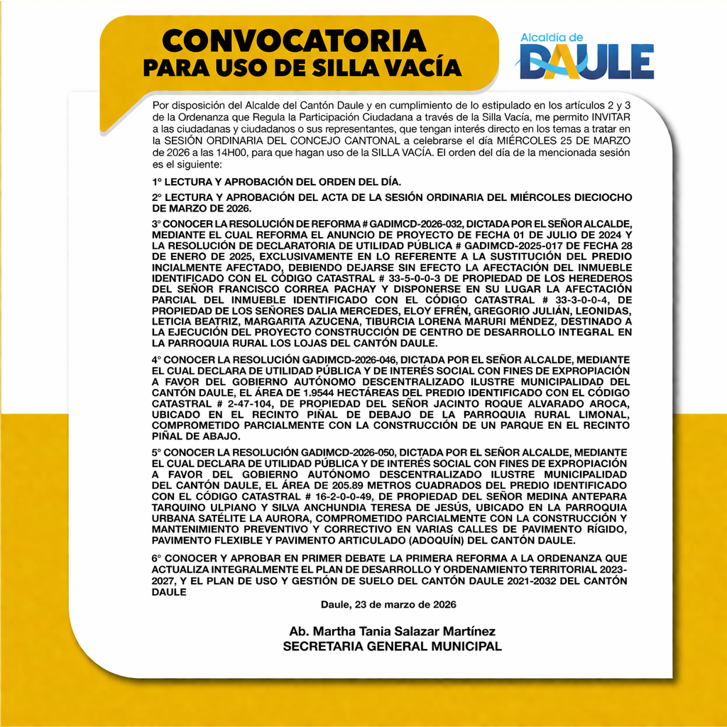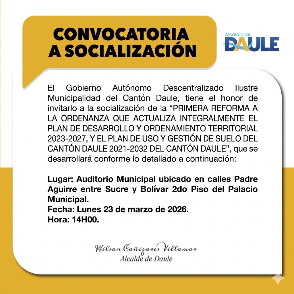 Encuentra los llamados públicos y anuncios generales del GAD Municipal de Daule