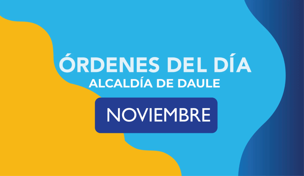 Por disposición del Doctor Wilson Cañizares Villamar, Alcalde del cantón Daule, me permito convocar a SESIÓN ORDINARIA a todos los señores concejales principales del cantón para el VIERNES 07 DE NOVIEMBRE del 2025 a las 14H00, en la Sala de Sesiones para tratar los siguientes puntos: